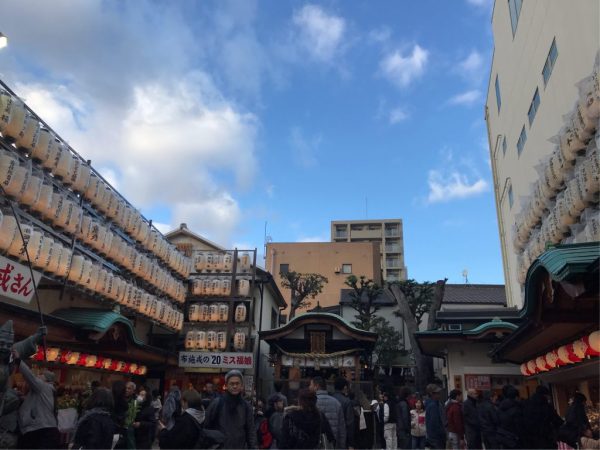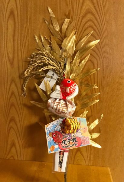 布施恵比寿の笹は緑の笹で大きいのですが、今年は「庚子」のとしなので、ゴールド笹にしました。