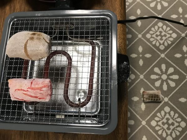 洗濯干しながらお餅を焼いていました。