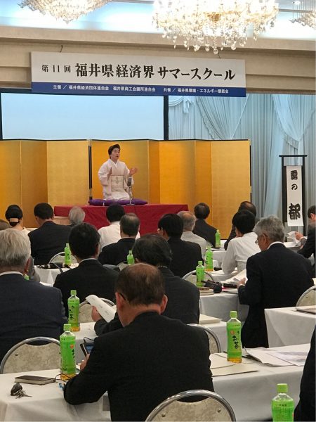 高座の前に、小浜湾を背に「福井県経済界サマースクール」の皆さまと記念撮影。