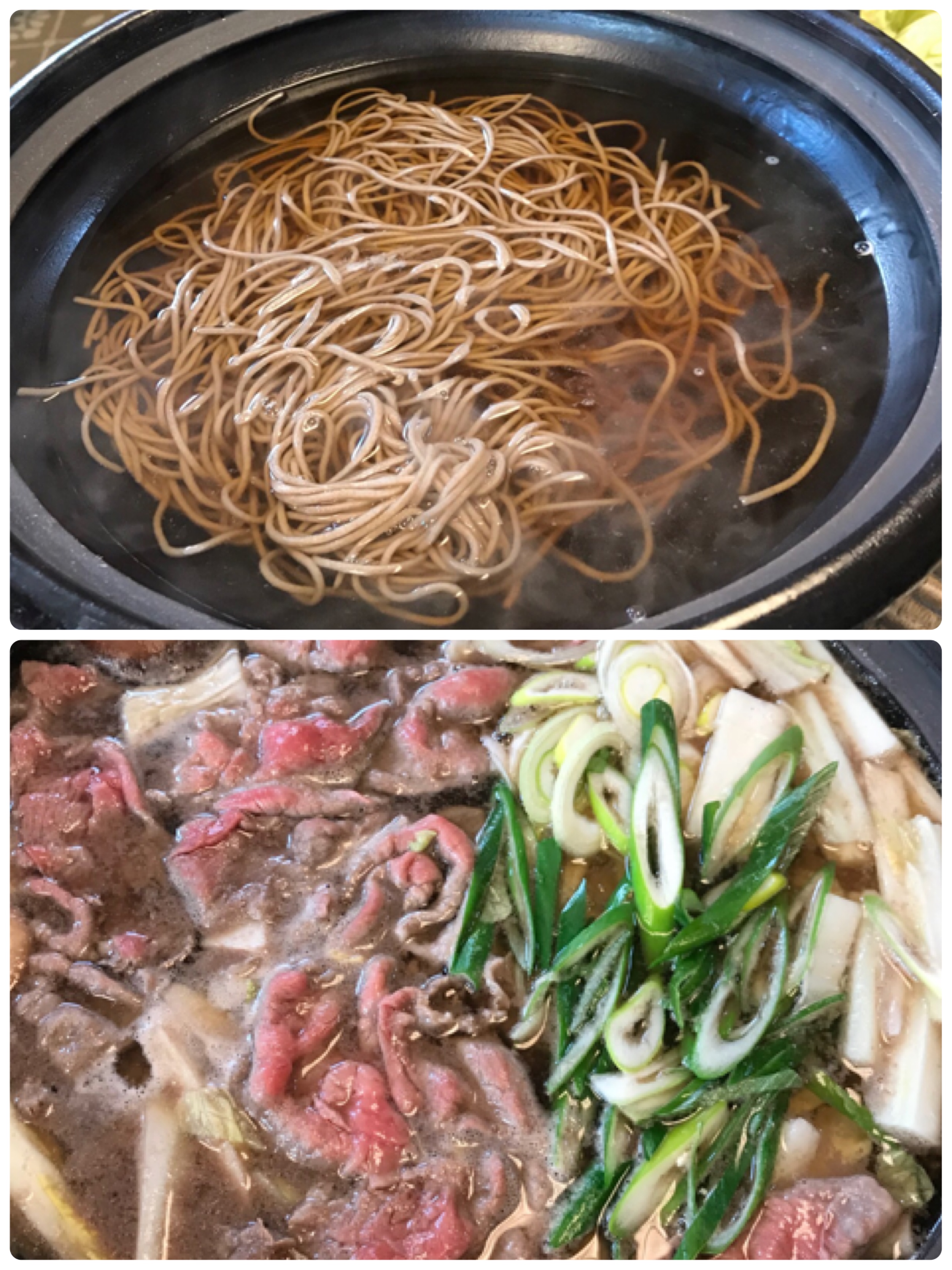 最初にお出汁でお蕎麦をいただき、お肉野菜を食べて最後にまたお蕎麦をいただきます。