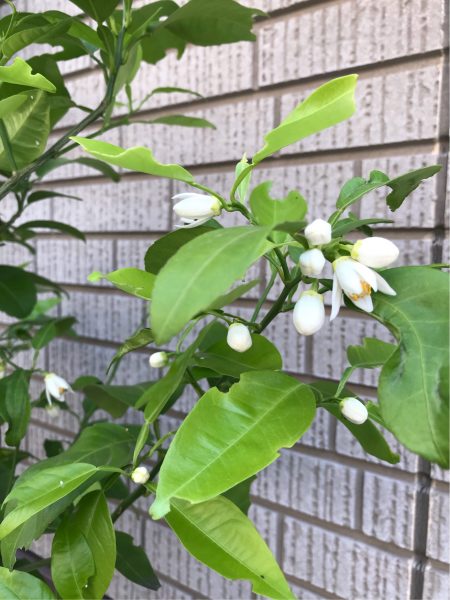 ある晴天の日、我が家の『レモンの木』に白い花が咲いてました。