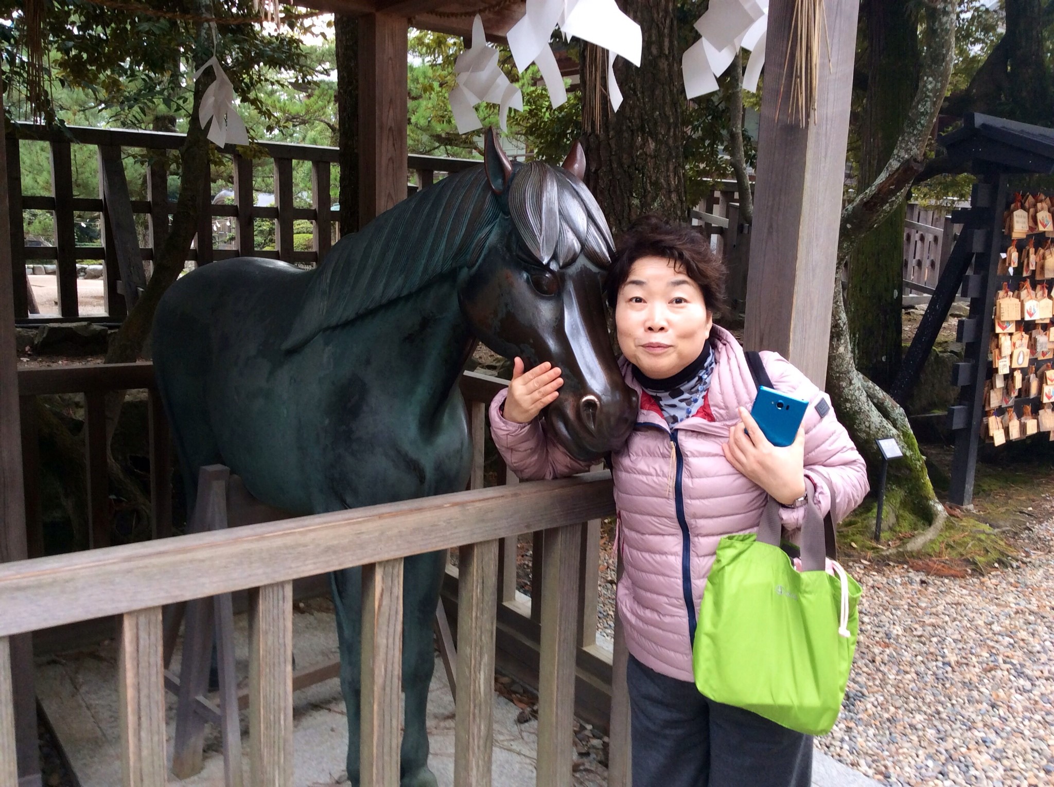 お馬さんの鼻に触ると「子宝」が授かるそうです。