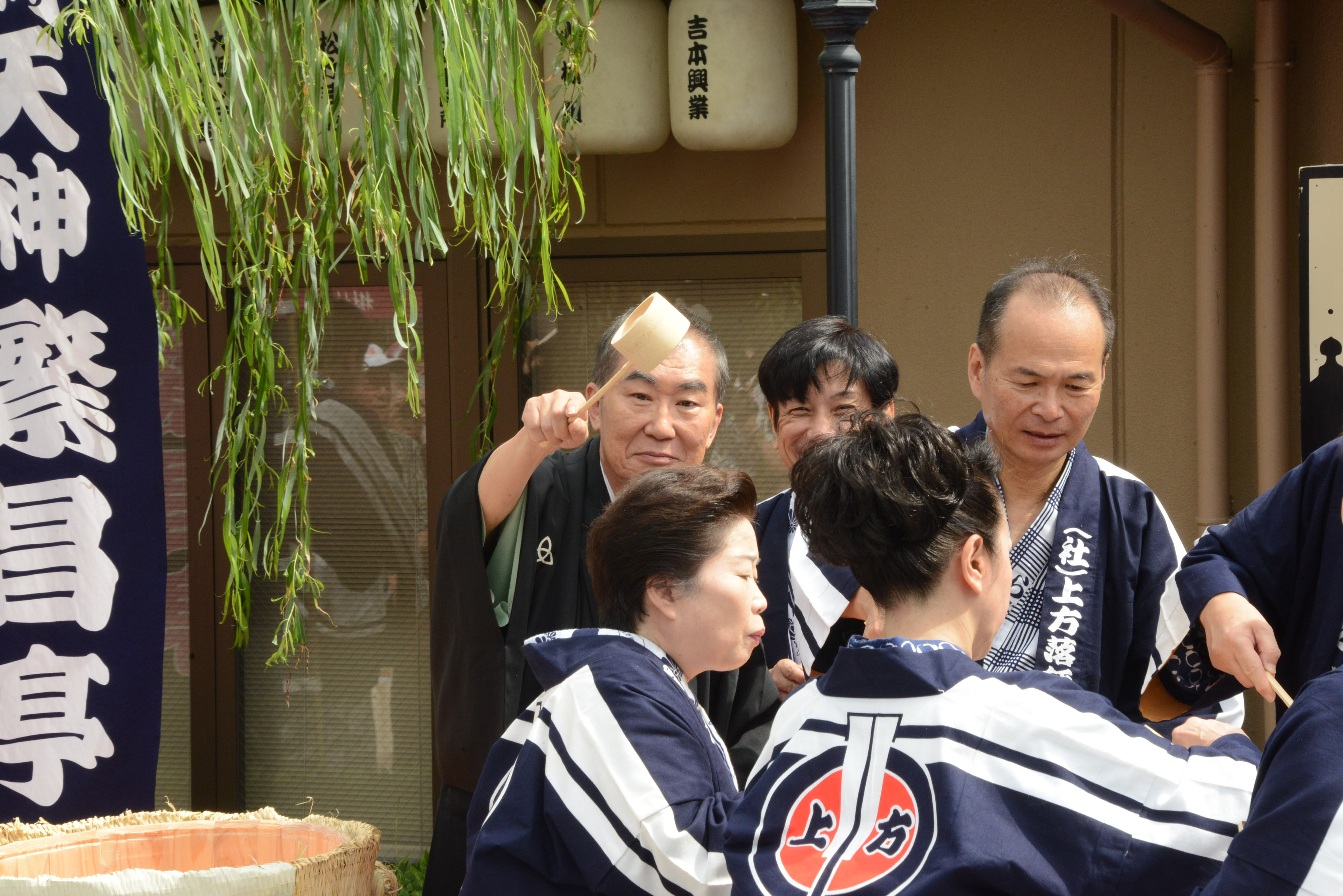 一生懸命お酒をついでる私の頭に文枝会長さんの柄杓が…。