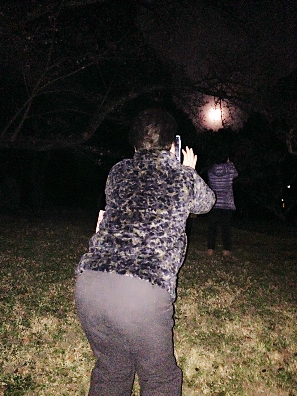 河内の国一宮の「枚岡神社」の境内でライトを浴びてワワワワ…。