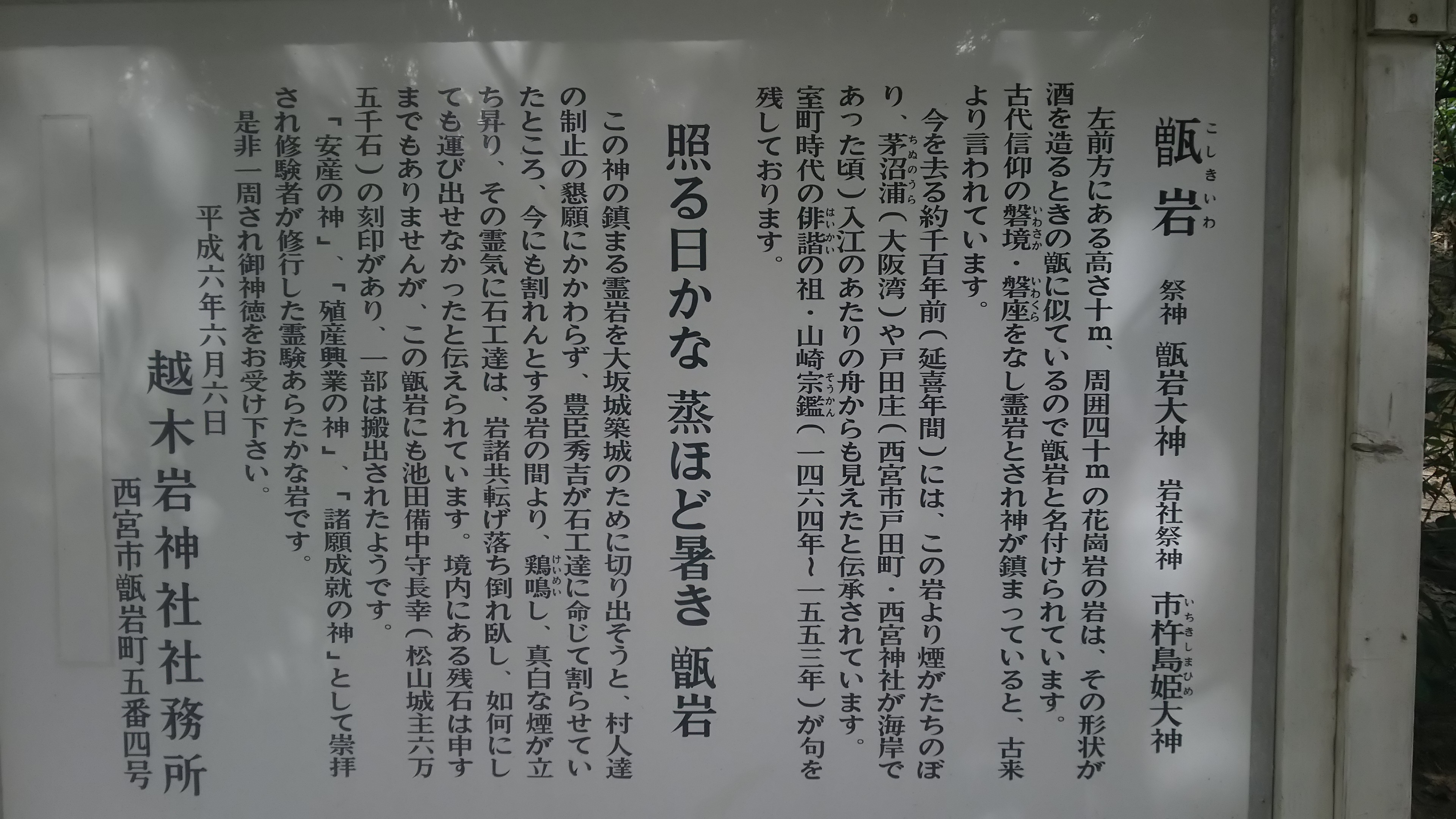 2回目の「祐気取り」に西宮市の「越木岩神社」におまいりに行きました。