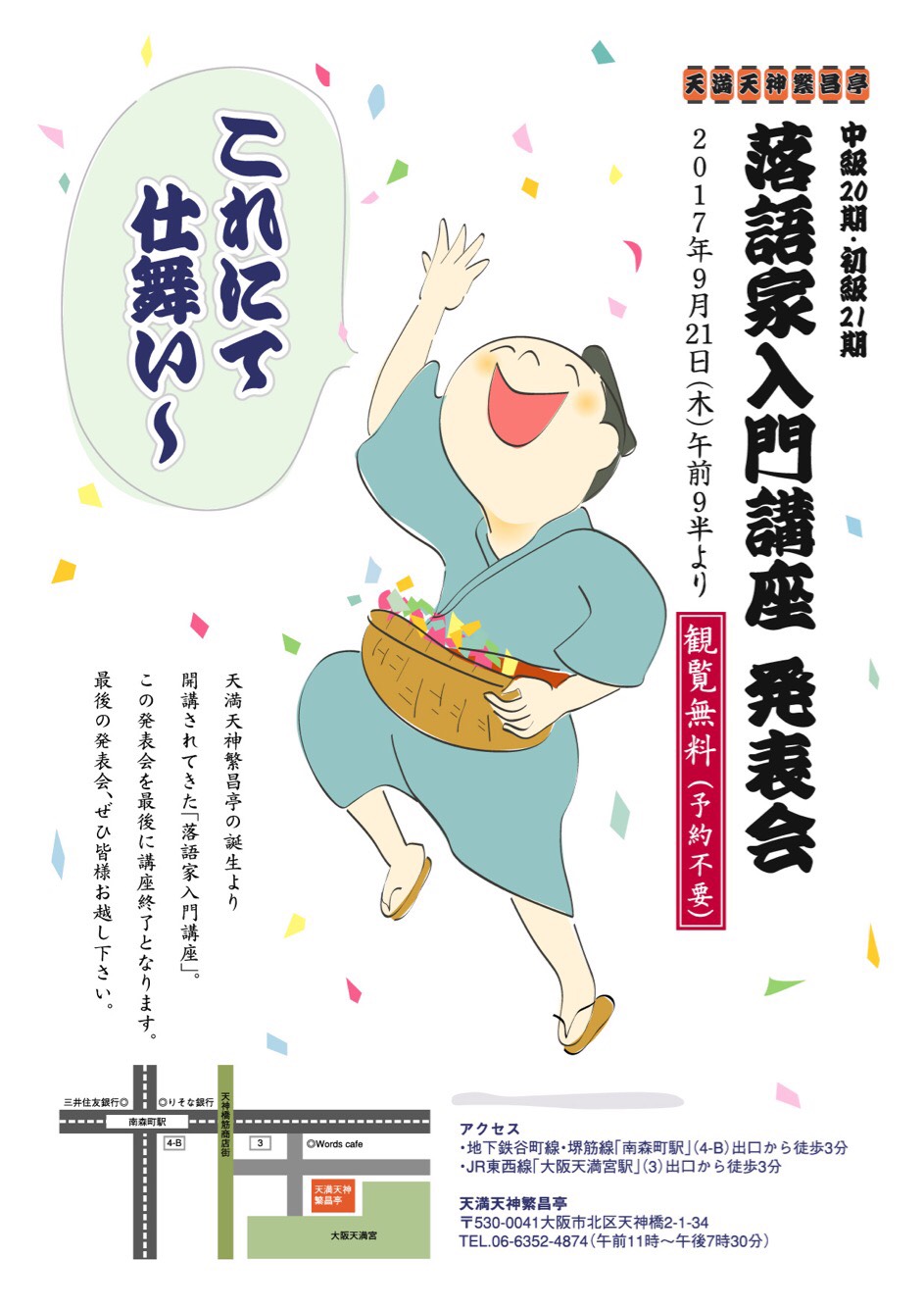 9月24日の9時半から繁昌亭入門講座の生徒さんたちの発表会が開催されます。