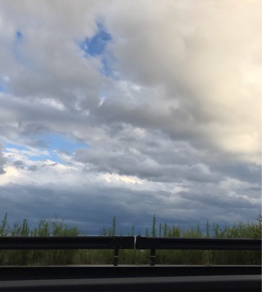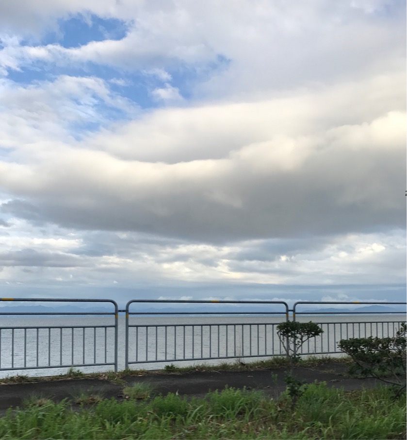 行きしなはどしゃ降りにもあいましたが、帰りは琵琶湖の空に上機嫌です。