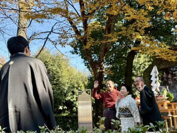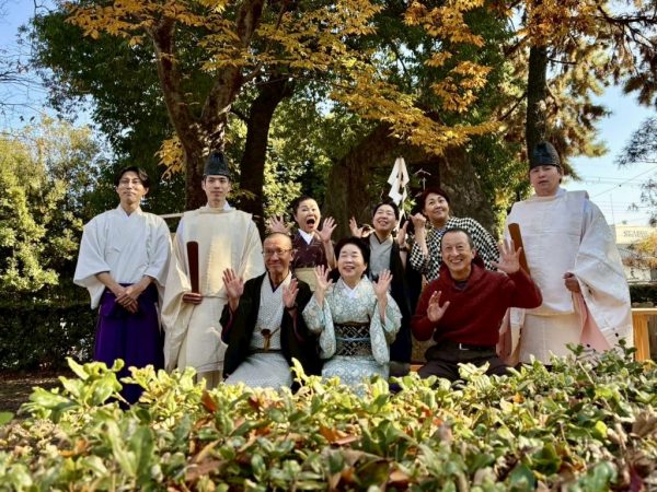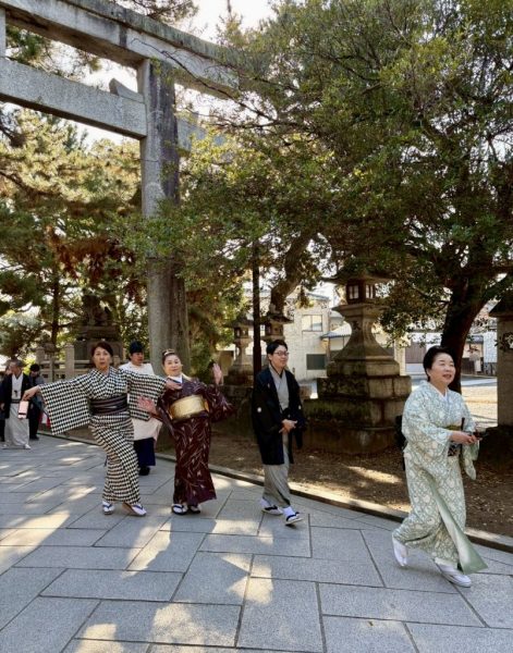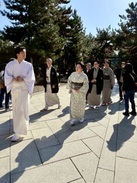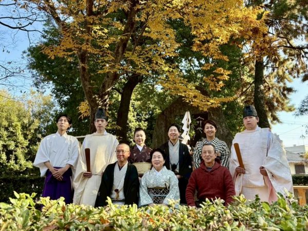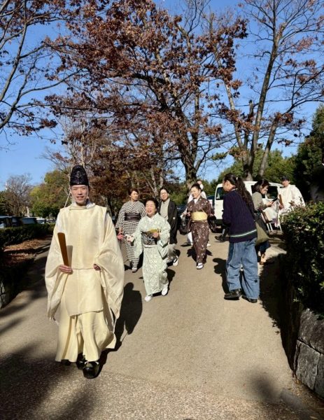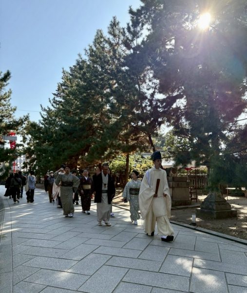 本殿で正式参拝を終えて碑にむかっています。
