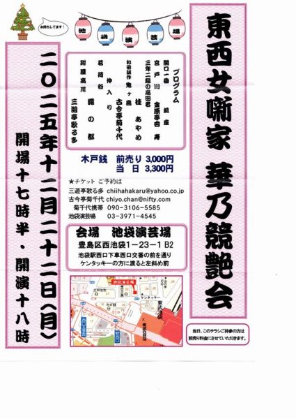 | チケットのお求め | 池袋演芸場03-3971-4545、都06-6785-2525 |
