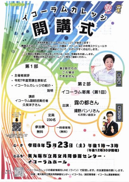 | 開演 | 第一部 13:00 イコーラムカレッジ開講式 第二部 14:00 第一回イコーラム寄席 |