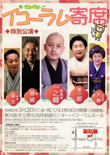 | 出演者 | 春風亭一之輔、露の都、桂春蝶、林家染吉、松旭斎天蝶(手品) |